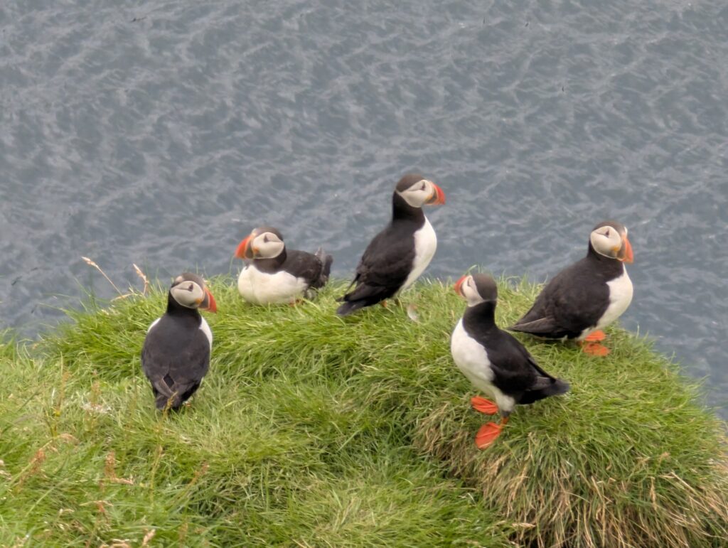 Noch vor dem Auslaufen aus dem Hafen greifen dankbare Abnehmer nach den Tabletten gegen Reiseübelkeit, da die Wellen direkt nach dem Ablegen zu spüren sind. 2,2m sind angekündigt, also isländisches Sommerwetter. Es geht auch anders, denn es gibt überall an Bord Spender mit Spuckboxen, wie die Asia-Nudelboxen, nur etwas größer. Auf Heimaey, der einzigen dauerhaften bewohnten Insel der Westmänner-Inseln, diese Inseln mit eigenem Vulkansystem sind auch als Vestmannaeyjar bekannt, gibt es in den Sommermonaten eine riesige Population von Puffins, Papageitauchern. Etwa 10 Millionen der Vögel nisten dann hier. Und wir haben Glück: über eine Lavastraße gelangt der Hobby-Ornithologe zu steilen Klippen um den putzigen Gesellen, die wie Hummeln umherschwirren und sich über den Atlantik zum Fischen begeben, staunend zuzuschauen.